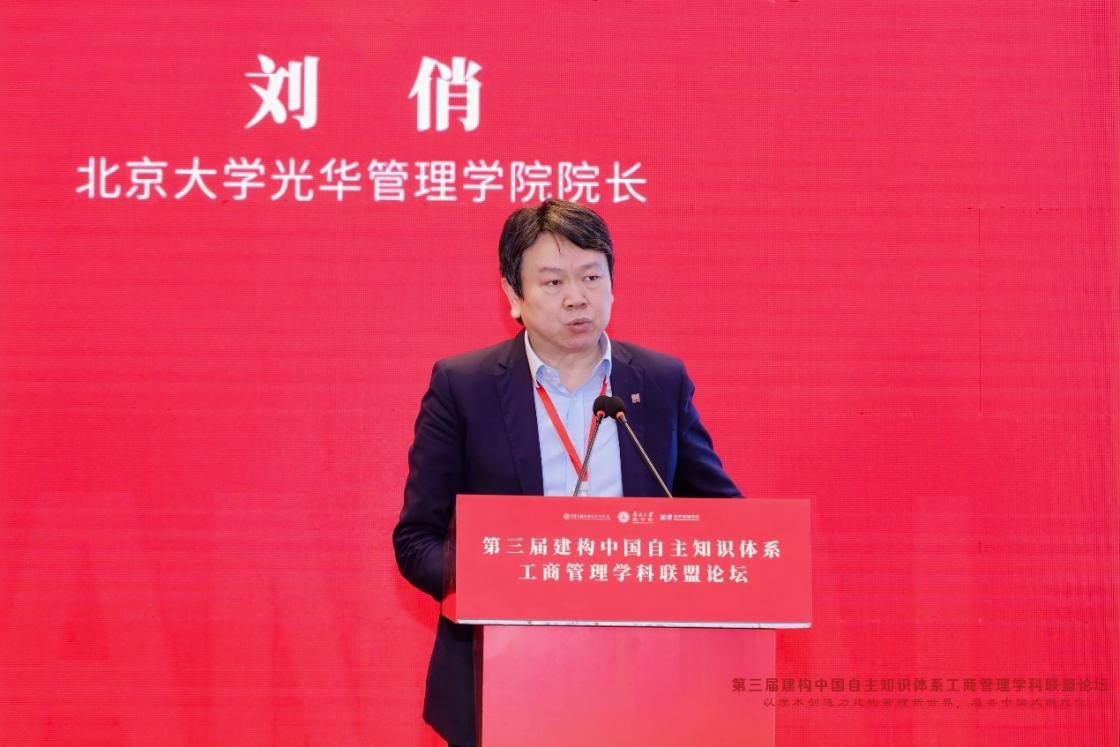 北京大学光华管理学院院长刘俏作“管理学研究如何推动新质生产力发展”的主旨报告。