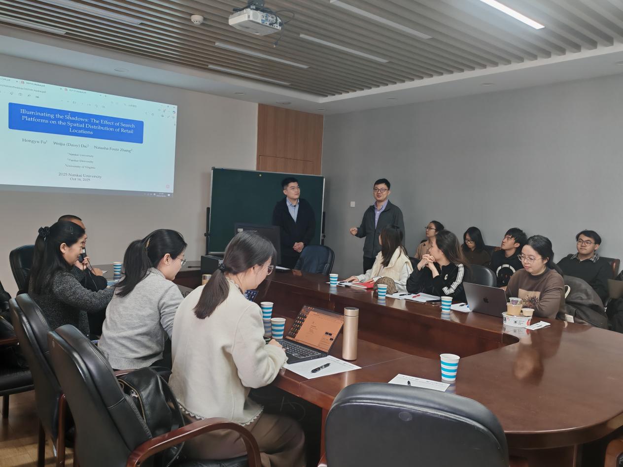 在交流环节中,与会师生与傅宏宇老师围绕大数据与计量研究的价值、论文受众及理论创新等议题展开了深入讨论。参会者认为,该研究具有重要的实践意义,能够为政府制定产业规划与优化空间布局提供参考。若能进一步补充机制性解释,该研究还可为餐饮从业者的选址决策提供更多启发。
