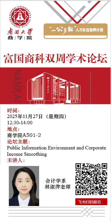 富国商科双周论坛:Public Information Environment and Corporate Income Smoothing